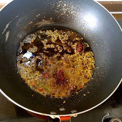 5. 炒蔬菜:锅中留底油,放入豆瓣酱、辣椒、花椒炒香,再加入蔬菜翻炒至断生。